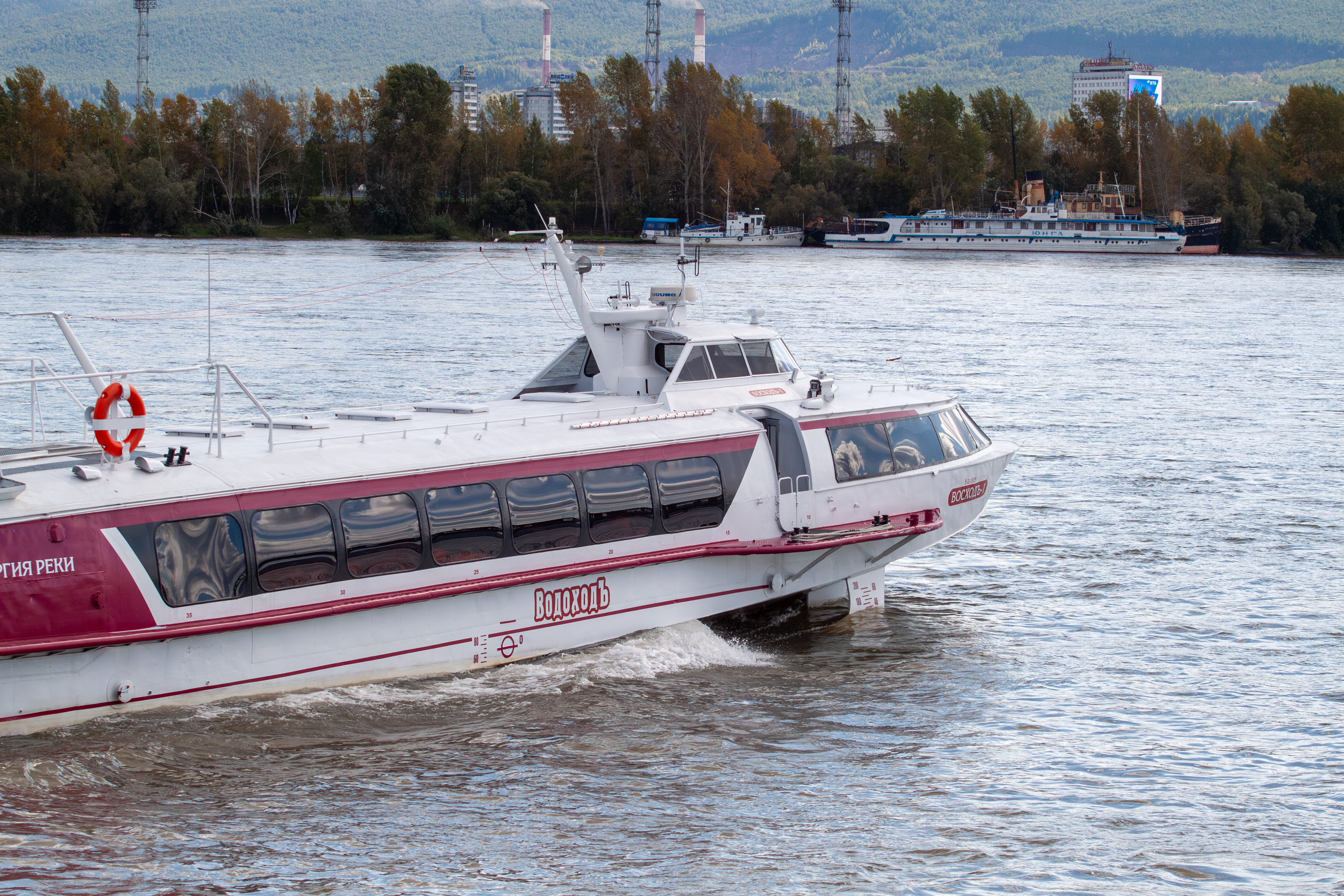 12 сентября компания АО «ВодоходЪ. Пассажирский Порт» открыла скоростную пассажирскую линию на Енисее по маршруту Красноярск—Дивногорск—Красноярск. Скоростное судно на подводных крыльях (СПК) «ВосходЪ-1» будет работать на линии до середины октября.